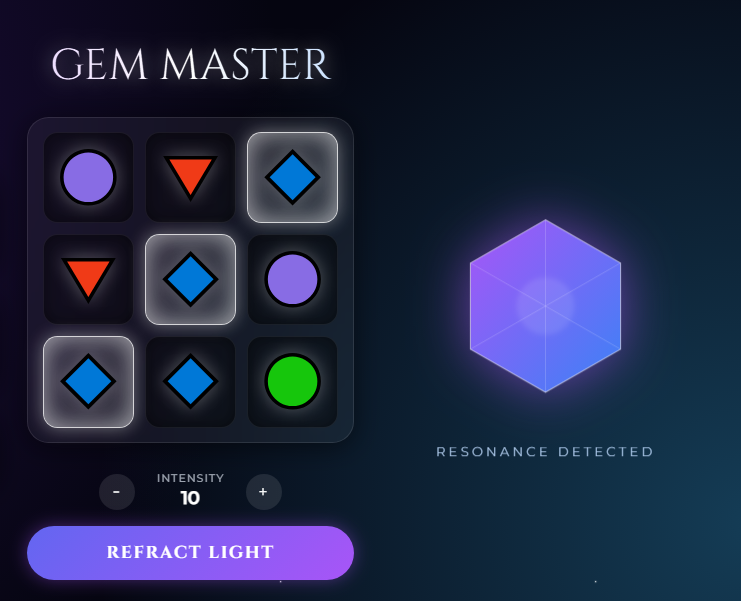 A dimension of structure and clarity. Shapes align themselves into lattice patterns, glowing softly as they shift between harmony and chaos. Within this realm emerges Gem Master — a world where every movement reorders the geometry of light.